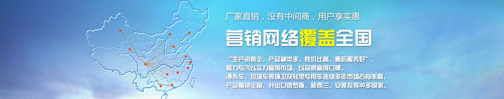 我公司致力于开发生产销售专用汽车为已任,为您量身打造方便实用,耐用的专用汽车,其主导品种有园林绿化洒水车、环卫洒水车、油罐加运油车、吸粪车、吸污车、摆臂、挂桶、密封式垃圾车、厢式运输车、消防车、半挂车、自卸车、水泥车、随车吊等八大系列100多个品种300多个车型。同时批发东风、解放、福田等各种二类底盘。目前我公司销售网络基本已覆盖全国各地,具体如下。
